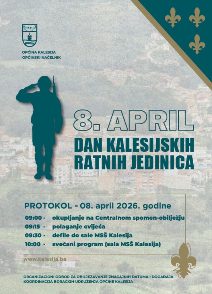 Organizacioni odbor za obilježavanje bitnih datuma i događaja na području općine Kalesija utvrdio je protokol za obilježavanje 8.aprila – Dana kalesijskih ratnih jedinica.